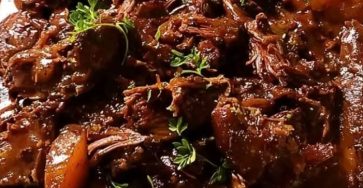 Tender Slow-Cooked Lamb in Rich Red Wine and Herb Sauce