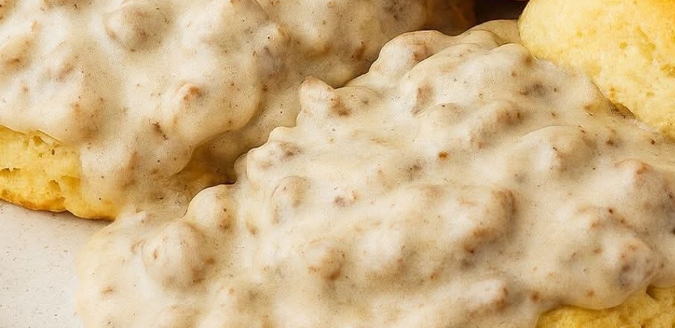 4. Serve warm biscuits topped with creamy sausage gravy.
