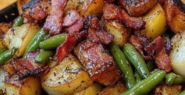 Ingredients:- 1 pound fresh green beans, trimmed- 4 medium potatoes, diced- 1 medium onion, chopped- 4 slices of bacon, chopped-…