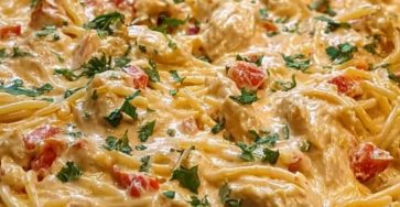 📋 Ingredients:For the Base:8 oz spaghetti, cooked and drained2 cups cooked shredded chicken (rotisserie chicken works great)For the Flavor:1 can…