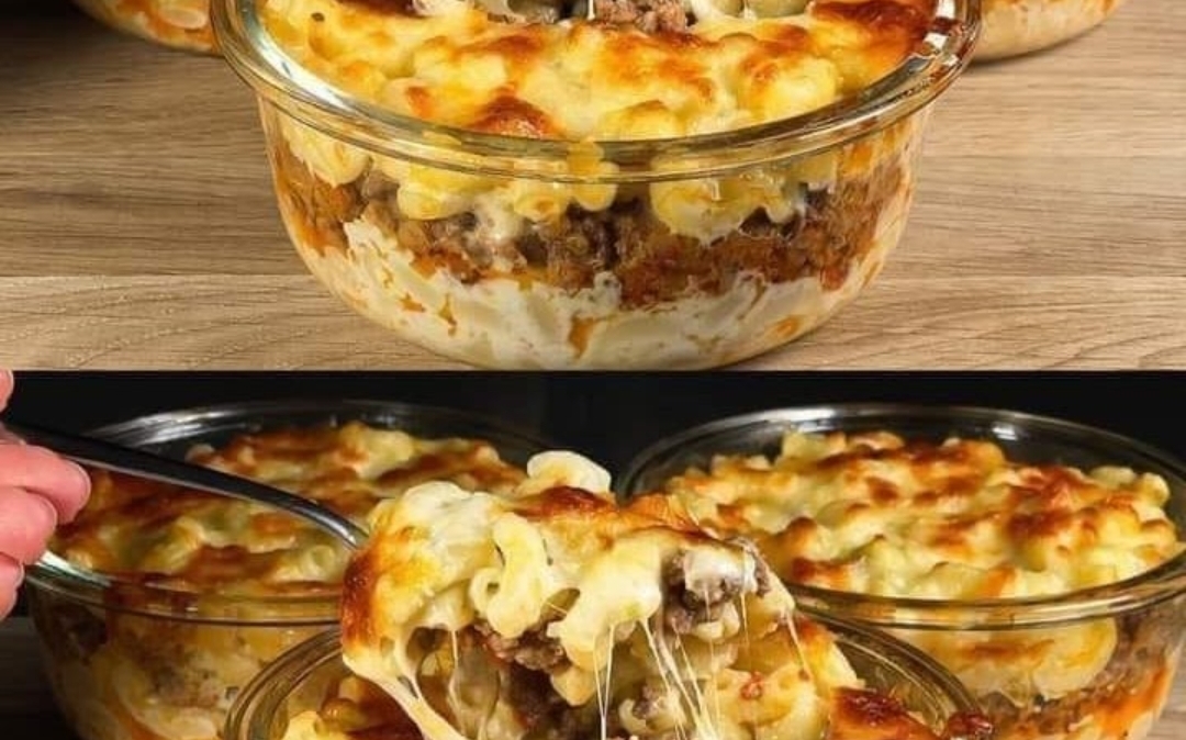 Ingredients– 1 pound ground beef– 1 small onion, finely chopped– 2 cloves garlic, minced– 1 teaspoon Italian seasoning– 1/2 teaspoon salt– 1/2 teaspoon black pepper– 2 cups marinara sauce– 2 cups uncooked elbow macaroni– 2 cups shredded mozzarella cheese– 1 cup shredded cheddar cheese– 1/2 cup grated Parmesan cheese– 2 cups heavy cream– 2 tablespoons butter– 2 tablespoons all-purpose flour– Fresh parsley, chopped (for garnish)PreparationCook the Macaroni:– Bring a large pot of salted water to a boil.– Add the elbow macaroni and cook according to the package instructions until al dente.– Drain and set aside.Cook the Beef:– In a large skillet, cook the ground beef over medium heat until browned, breaking it up with a spoon as it cooks.– Add the finely chopped onion and minced garlic, and cook until the onion is translucent.– Stir in the Italian seasoning, salt, and black pepper.– Add the marinara sauce and let it simmer for about 5 minutes.Prepare the Cheese Sauce:– In a medium saucepan, melt the butter over medium heat.– Stir in the flour and cook for about 1 minute, stirring constantly.– Gradually whisk in the heavy cream, continuing to whisk until the mixture thickens and is smooth.– Stir in the grated Parmesan cheese until melted and well combined.Assemble the Casserole:– Preheat your oven to 375°F (190°C).– In a large mixing bowl, combine the cooked macaroni with the cheese sauce, mixing well to coat the pasta evenly.– In a greased 9×13 inch baking dish, spread half of the macaroni and cheese mixture.– Top with the beef and marinara sauce mixture.– Spread the remaining macaroni and cheese mixture over the beef layer.– Sprinkle the shredded mozzarella cheese and shredded cheddar cheese evenly over the top.Bake:– Bake in the preheated oven for about 25-30 minutes, or until the cheese is melted and bubbly, and the top is lightly golden.Garnish and Serve:– Remove from the oven and let it cool for a few minutes.– Garnish with freshly chopped parsley before serving.Enjoy your delicious Cheesy Beef and Macaroni Casserole!If you have any other specific requests or need further assistance, feel free to ask!