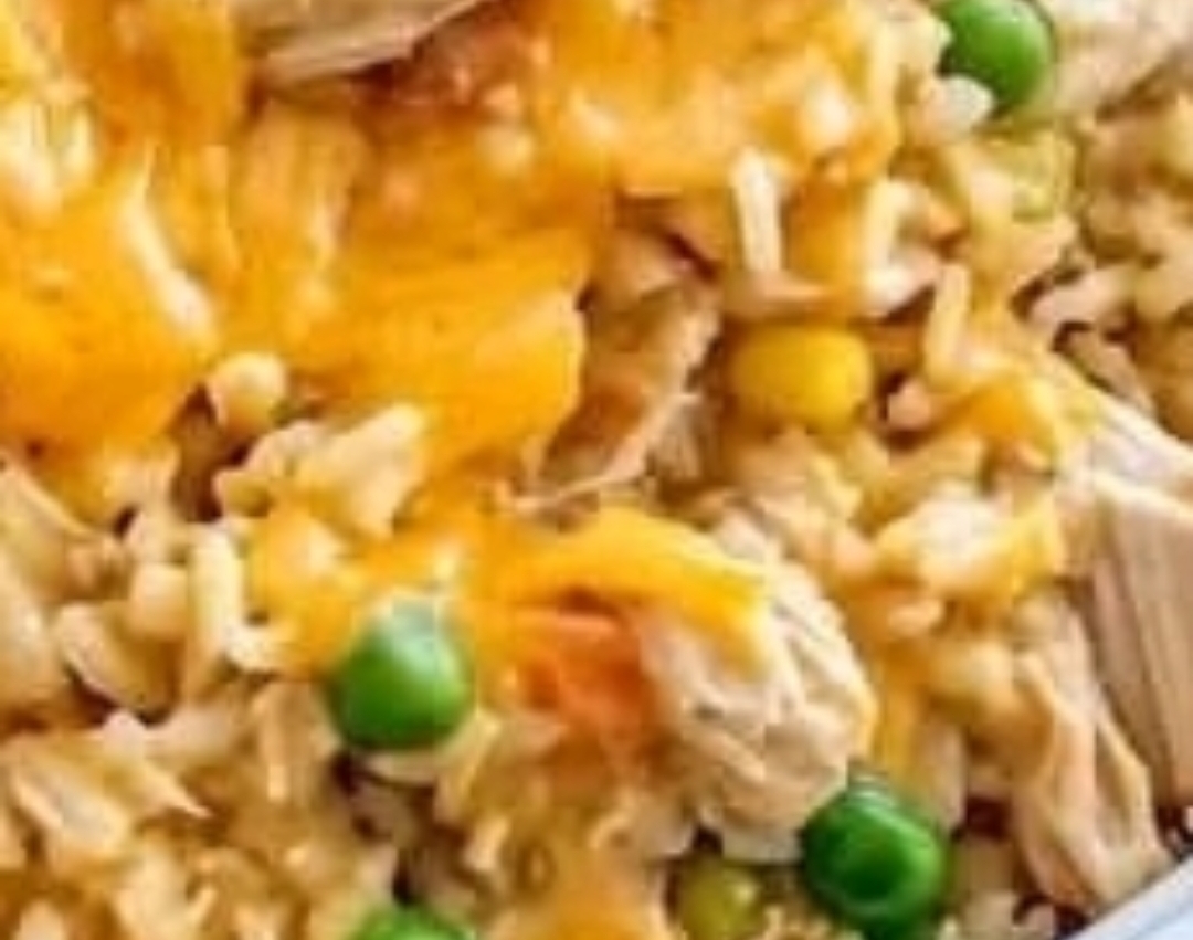 Certainly! Here is the complete and polished recipe profile for Cheesy Crockpot Chicken and Rice, including all the sections you requested and with the wide line removed.IntroductionCheesy Crockpot Chicken and Rice is the ultimate comfort food—warm, creamy, and irresistibly cheesy. With minimal prep and a hands-off cooking method, this hearty one-pot meal is perfect for busy weeknights, family dinners, or cozy weekends. Tender chicken, fluffy rice, and melted cheese come together in a rich, satisfying dish that’s both filling and family-friendly.Origin and Cultural SignificanceSlow-cooked meals have long been a staple in American households, offering convenience and deep flavor development. This dish is a modern evolution of classic chicken and rice casserole, adapted for the crockpot to suit fast-paced lifestyles. Combining pantry staples and the comforting appeal of melted cheese, it exemplifies how traditional home cooking continues to thrive in contemporary kitchens through easy, adaptable recipes.Ingredients Quantity1 lb (450 g) boneless, skinless chicken breastsSalt and black pepper, to taste1 cup (180 g) uncooked long-grain white rice1 (10.5 oz / 298 g) can cream of chicken soup1 (10.5 oz / 298 g) can cream of mushroom soup (or use two of the same kind)1 ¾ cups (415 ml) low-sodium chicken broth1 teaspoon garlic powder1 teaspoon onion powder1 ½ cups (170 g) shredded cheddar cheese1 tablespoon butter (optional, for added richness)Fresh parsley or green onions, chopped (for garnish)Optional AdditionsFrozen mixed vegetables (1–1½ cups) – for added nutrition and colorCream cheese (2 oz) – for extra creaminessPaprika or cayenne – for a mild kickBroccoli florets – stir in during the last hour of cookingParmesan cheese – sprinkled on top before serving for sharpnessTips for SuccessRinse the rice lightly to reduce excess starch and prevent clumping.Layer ingredients without stirring to avoid gummy rice—let it cook evenly.Use low-sodium soups and broth to better control saltiness.Shred the chicken just before serving for a tender, uniform texture.Stir in cheese at the end to prevent separation or overcooking.InstructionsSeason chicken breasts with salt, pepper, garlic powder, and onion powder.In the crockpot, layer uncooked rice on the bottom, then place seasoned chicken breasts on top.In a separate bowl, whisk together cream of chicken soup, cream of mushroom soup, and chicken broth. Pour the mixture over the chicken and rice.Cover and cook on low for 5–6 hours or high for 2½–3½ hours, until chicken is fully cooked and rice is tender.Remove chicken, shred with two forks, and return to the crockpot.Stir in shredded cheese and butter (if using) until melted and well combined.Serve warm, garnished with chopped parsley or green onions.DescriptionThis dish is creamy, cheesy, and wonderfully comforting. The rice is tender and infused with savory flavors, while the shredded chicken melts in your mouth. Rich without being heavy, this crockpot classic is a one-pot wonder that’s as easy as it is delicious. Every bite is loaded with warm, cheesy goodness.Nutritional Information (Estimated per serving, based on 6 servings)Calories: 420Protein: 30gFat: 18gCarbohydrates: 34gFiber: 1gSugar: 2gSodium: 850mgCalcium: 20% DVIron: 10% DVConclusionCheesy Crockpot Chicken and Rice is the kind of recipe that warms hearts and fills bellies with ease. Whether you’re feeding a family or meal prepping for the week, it’s a no-fuss, all-flavor dish that delivers on every level—comfort, taste, and convenience.RecommendationServe with a crisp green salad, roasted vegetables, or a side of steamed broccoli to round out the meal. Leftovers keep well in the fridge for up to 3 days and can be reheated for quick lunches or dinners.Embracing Healthful IndulgenceTo make it a bit lighter, use reduced-fat cheese, low-fat soups, or substitute brown rice or quinoa for added fiber. You can also bulk up the dish with extra veggies or swap in Greek yogurt for some of the creamy components. This dish proves that indulgence and nourishment don’t have to be opposites—they can be perfectly balanced in one comforting bowl.Let me know if you want a printable version or freezer-friendly instructions!Enjoy!