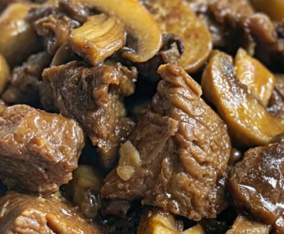 5️⃣ Serve: Give everything a gentle stir to combine the rich, creamy sauce with the tender beef and mushrooms. Serve hot over fluffy white rice, buttered egg noodles, or mashed potatoes for the ultimate comfort meal.