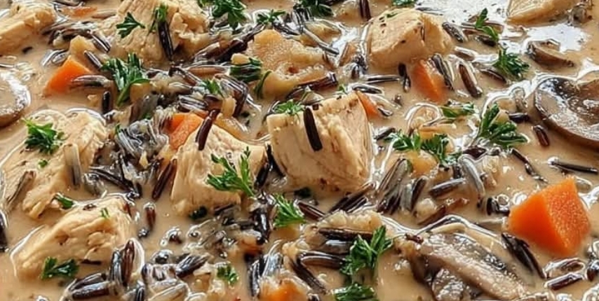 4οΈβ£ Pour in the chicken broth, then add rice, cooked chicken, and sautΓ©ed mushrooms. Bring to a boil, then reduce heat and simmer covered for 20β30 minutes, until rice is tender.