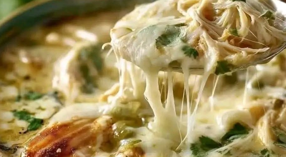 Creamy, cheesy, and full of zesty flavor — this slow-cooked green enchilada chicken soup is the perfect comfort food with a spicy Southwestern kick! 😋 Prep time: 10 minutesCook time: 6 hoursTotal time: 6 hours 10 minutesYield: 6 servings Ingredients:* 2 large chicken breasts* 1 (10 oz) can green enchilada sauce* 1 (4 oz) can diced green chiles* 1 cup frozen corn (optional)* 1 (8 oz) block cream cheese, cubed* 3 cups chicken broth* 1 cup shredded Monterey Jack cheese* 1 teaspoon cumin* 1/2 teaspoon garlic powder* Salt and pepper to taste* Fresh cilantro and lime wedges for garnish Instructions:1. Place chicken breasts in the crock pot.2. Add green enchilada sauce, green chiles, corn, chicken broth, cumin, garlic powder, salt, and pepper.3. Cover and cook on LOW for 6–7 hours or HIGH for 3–4 hours, until the chicken is tender and cooked through.4. Shred the chicken using two forks, then stir in cream cheese and shredded Monterey Jack.5. Cover again and cook for 15–20 minutes, stirring occasionally, until cheese and cream cheese are fully melted and blended.6. Garnish with fresh cilantro and a squeeze of lime before serving.Pro Tip:Add a handful of crushed tortilla chips or a spoonful of salsa verde on top for extra crunch and flavor! 🌽🔥