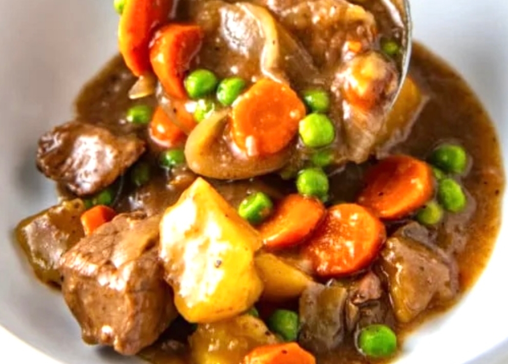 This easy crockpot beef stew recipe is filled with tender beef and flavorful vegetables like carrots, potatoes, and peas, all smothered in a rich and hearty beef gravy. It only takes 10 minutes to prep, making it a comforting and easy weeknight meal option!Sometimes, you just need some true comfort, and there’s nothing cozier than a big bowl of hearty beef stew! What makes it even better is that the slow cooker does all the work for you, so all you need to do is dig in when it’s time to eat. This beef stew is always a hit on chilly winter nights, sick days, or just for when you need a warm hug in the form of a meal! Here’s why we’ve been making this slow cooker recipe for so many years:Easy 10 Minute Prep: Basically, the only prep work that you need to do is to cut the vegetables. There’s no need to sear the beef either. Once your veggies are prepped you just toss it all into the slow cooker and step away! Sometimes we will cut them and store them in the fridge overnight so morning prep is even easier!Family Friendly: When it comes to American classic dinners, beef stew is one of the most well loved and enjoyed from kids to adults. Just don’t forget the warm soft rolls to soak up all that savory gravy and the whole family will dive in!Affordable: There are no expensive cuts of beef or fancy ingredients here. Beef stew pieces are usually pretty inexpensive, as are potatoes and carrots. You don’t even need any sides, it’s a one pot dinner with the main dish and side all in one.Travels Well: This is also a great hearty dish to take to a party or potluck during the colder months. It travels easily in crockpot and all you need are bowls and spoons to serve it up!Most of the ingredients you need are probably already in your pantry! Below you will find helpful notes for key ingredients used to make crock pot beef stew. Scroll down to the recipe card for the full ingredient list and exact amounts!Beef Broth: Try to use low-sodium beef broth so that you can control the salt level.Cubed Stew Beef: Easy to find in the grocery store and it’s super affordable! A great way to eat beef on a budget. It may be labeled as cubed chuck roast or stew meat.Beef Bouillon: This will deepen the flavor of the beef gravy. We used Better Than Bouillon, but you could also use granulated beef bouillon.Potatoes: We used Yukon gold potatoes as their buttery texture works perfectly, but you can also use red potatoes.Sliced Carrots: Whole carrots have more flavor, but baby carrots can also be used.Frozen Peas: No need to thaw.Ingredients▢2 cups beef broth▢2 pounds cubed stew beef▢1 tablespoon garlic powder▢1 teaspoon black pepper, freshly cracked▢1 teaspoon salt▢1 tablespoon beef bouillon▢1 tablespoon Worcestershire sauce▢1 ½ pounds golden Yukon potatoes, cut into chunks▢2 cups sliced carrots▢1 large yellow onion, sliced▢1 cup frozen sweet peas▢3 tablespoons cornstarch▢3 tablespoons waterInstructionsPour the beef broth into the crockpot and add the beef. Sprinkle the beef with the garlic, black pepper, salt, beef bouillon and Worcestershire sauce.Add the cut potatoes, carrots and sliced onion on top of the beef.Place lid on crockpot and set your time. Cook for 4-6 hours on high, or 6-8 hours on low, until beef is fork tender.Once stew is cooked, add in the sweet peas.To thicken the gravy, you will need to make a slurry with cornstarch and gravy. In a bowl, whisk to combine the cornstarch and water until smooth. Then slowly pour the slurry into the crockpot and stir until all combined.Replace lid and turn the crockpot to high heat and cook for 10 minutes, stirring every so often, until thickened. Serve immediately!NotesStorage: Store leftovers in an airtight container, in the fridge, for up to 5 days. Freeze: Freeze for up to 3 months. Let thaw in the fridge for 24 hours before serving for best results.Reheat: You can reheat it in the microwave or on the stovetop for a quick and easy lunch or dinner.Sear the beef: To deepen the flavor of the beef, you can sear the beef in the skillet before adding it to your crockpot. This is not necessary but will add an extra depth of flavor to your stew.Add more flavor: Add ¼ cup of red wine (or unsweetened black coffee!) for a more intense gravy flavor.Beef Bouillon: This will deepen the flavor of the beef gravy. We used Better Than Bouillon, but you could also use granulated beef bouillon.Low and slow method: We highly recommend going with the low setting for a longer cooking time for the most tender beef.