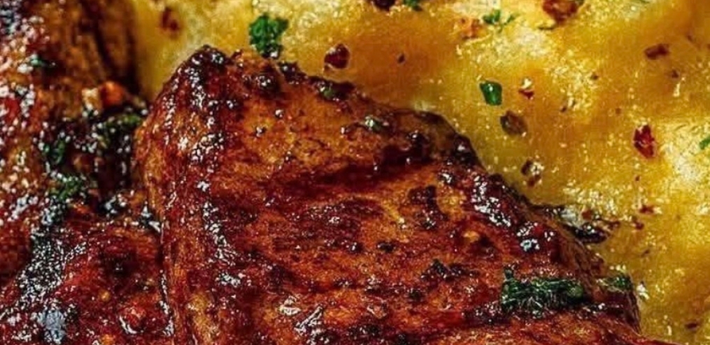 Here are the recipes for Garlic Butter Steak Bites and Cheesy Smashed Potatoes. These dishes complement each other perfectly for a flavorful and hearty meal.Garlic Butter Steak BitesINGREDIENTS:1 lb (450g) sirloin steak or ribeye, cut into bite-sized cubes2 tbsp olive oil3 tbsp unsalted butter4 cloves garlic, minced1 tsp dried thyme (or 1 tbsp fresh thyme, chopped)1 tsp dried rosemary (or 1 tbsp fresh rosemary, chopped)Salt and pepper to tasteFresh parsley, chopped (for garnish, optional)INSTRUCTIONS:Season Steak:Season the steak cubes generously with salt and pepper.Heat Oil:Heat olive oil in a large skillet over medium-high heat.Cook Steak Bites:Add steak cubes to the skillet in a single layer (you may need to cook them in batches).Sear for about 2-3 minutes on each side or until they reach your desired level of doneness. Avoid overcrowding the pan for the best sear.Add Garlic and Butter:Reduce heat to medium. Push the steak bites to one side of the skillet.Add butter to the empty side of the skillet. Once melted, add minced garlic, thyme, and rosemary.Stir the garlic and herbs into the butter and let it cook for about 1 minute, or until fragrant.Combine and Serve:Toss the steak bites in the garlic butter mixture to coat them well.Garnish with chopped parsley if desired.Serve immediately.Cheesy Smashed PotatoesINGREDIENTS:1.5 lbs (675g) baby potatoes or small Yukon Gold potatoes2 tbsp olive oil1/2 cup (120ml) milk1/4 cup (60ml) sour cream1 cup (100g) shredded cheddar cheese (or cheese of your choice)3 tbsp unsalted butterSalt and pepper to taste2-3 green onions, chopped (for garnish, optional)INSTRUCTIONS:Boil Potatoes:Place potatoes in a large pot and cover with water. Add a pinch of salt.Bring to a boil and cook until potatoes are tender and easily pierced with a fork, about 15-20 minutes.Drain and Smash:Drain potatoes and return them to the pot.Use a potato masher or the back of a fork to gently smash the potatoes. They should remain somewhat chunky.Mix Ingredients:Add olive oil, milk, sour cream, butter, and shredded cheese to the smashed potatoes.Stir until everything is well combined and the cheese is melted. Season with salt and pepper to taste.Serve:Transfer potatoes to a serving dish. Garnish with chopped green onions if desired.Enjoy these flavorful and comforting dishes!