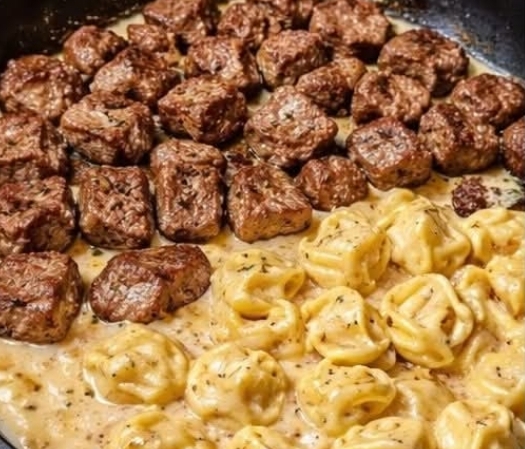 Garlic Butter Steak Bites & Creamy Alfredo Tortellini