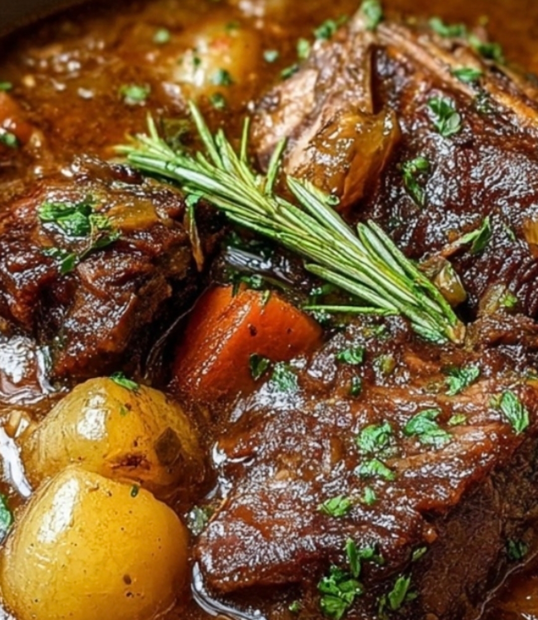 Hearty Beef Short Rib Stew with VegetablesIngredients3 lbs (1.4 kg) beef short ribs, bone-in2 tbsp olive oil1 large onion, chopped3 garlic cloves, minced3 large carrots, cut into chunks3 large potatoes, peeled & cubed2 celery stalks, sliced2 tbsp tomato paste1 cup (240 ml) red wine (optional)4 cups (1 liter) beef broth2 bay leaves2 sprigs fresh rosemary (or 1 tsp dried)3 sprigs fresh thyme (or 1 tsp dried)1 tsp paprika1 tsp salt (adjust to taste)½ tsp black pepper1 tbsp Worcestershire sauce (optional)1 cup peas (optional, added at the end)Fresh parsley, chopped (for garnish)InstructionsSeason & Sear the RibsPat short ribs dry, season with salt and pepper.Heat olive oil in a Dutch oven, sear ribs on all sides until browned. Remove and set aside.Cook AromaticsAdd onion, carrots, and celery. Sauté 5–6 minutes.Stir in garlic, cook for 1 minute.Build the Flavor BaseAdd tomato paste and paprika, stir to coat vegetables.Pour in red wine, scraping the pot, and reduce by half.Simmer the StewReturn ribs to the pot, add beef broth, Worcestershire, bay leaves, rosemary, and thyme.Cover and simmer on low for 2.5–3 hours until ribs are tender.Add Potatoes & FinishAdd potatoes 45 minutes before stew is done, cook until tender.Stir in peas during last 5 minutes.Remove herb stems and bay leaves, taste and adjust seasoning.ServeGarnish with fresh parsley.Serve hot with crusty bread.