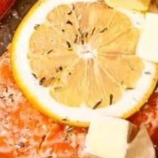 Put lemon slices on top of the salmon and the butter cubes on top of that. This keeps the fish moist and adds a lot of flavor as it melts.