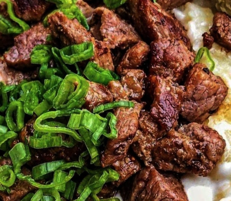 IngredientsFor the Potatoes:4 large russet potatoes1 tablespoon olive oilSalt and pepper to taste1 cup shredded cheddar cheese1/2 cup sour cream1/4 cup green onions (sliced)6 slices bacon (cooked and crumbled)2 tablespoons butter (optional for extra richness)For the Steak Bites:1 pound sirloin steak (cut into bite-sized pieces)2 tablespoons olive oil3 cloves garlic (minced)2 tablespoons unsalted butterSalt and pepper to taste1 teaspoon smoked paprika1 teaspoon onion powder1/4 teaspoon red pepper flakes (optional for spice)Fresh parsley (chopped, for garnish)Kitchen Equipment NeededBaking sheetSkillet (preferably cast iron)Aluminum foilTongs or spatulaKnife and cutting boardMixing bowlsPreparationStep 1: Bake the PotatoesPreheat your oven to 400°F (200°C). Wash the potatoes and pat them dry. Rub them with olive oil and sprinkle with salt and pepper. Pierce each potato several times with a fork, then place them directly on the oven rack or on a baking sheet. Bake for 45-60 minutes, or until the skin is crispy and the inside is tender when pierced with a fork.Step 2: Prepare the Steak BitesWhile the potatoes are baking, prepare the steak bites. Cut the sirloin steak into bite-sized cubes and season with salt, pepper, smoked paprika, onion powder, and red pepper flakes if using.Step 3: Sear the Steak BitesHeat a tablespoon of olive oil in a large skillet over medium-high heat. Once hot, add the steak bites in a single layer (work in batches if necessary to avoid overcrowding the pan). Sear the steak bites for 2-3 minutes on each side, or until browned and cooked to your desired doneness. Transfer the cooked steak bites to a plate and set aside.Step 4: Make the Garlic ButterIn the same skillet, lower the heat to medium and add the unsalted butter and minced garlic. Cook the garlic for about 30 seconds, stirring constantly to avoid burning. Once fragrant, return the steak bites to the skillet and toss to coat them in the garlic butter. Remove from heat and set aside.Step 5: Load the Baked PotatoesOnce the potatoes are fully baked, carefully slice them open down the center. Fluff the insides with a fork, then top each potato with butter (optional), shredded cheese, sour cream, crispy bacon, and green onions.Step 6: Top with Steak BitesPlace a generous serving of the garlic-butter steak bites on top of each loaded baked potato. Garnish with additional parsley and a pinch of salt and pepper if desired.Tips for Perfect Steak Bites and PotatoesChoose the Right Potatoes: Russet potatoes are best for baking because they have a high starch content and create a fluffy interior with a crispy skin.Get a Good Sear on the Steak: Make sure the skillet is hot before adding the steak bites. Searing them over high heat gives them a golden-brown crust and locks in the juices.Don’t Overcrowd the Pan: To ensure a good sear, cook the steak bites in batches if necessary. Overcrowding the pan will steam the steak instead of searing it.Use High-Quality Steak: Sirloin is a great cut for this recipe because it’s tender and flavorful, but you could also use ribeye or filet mignon for an even more indulgent meal.Recipe Variations and SwapsCheesy Potatoes: Mix in some extra cheese like gouda or mozzarella for an extra cheesy loaded potato experience.Add Veggies: Try adding some roasted or sautéed vegetables like mushrooms, onions, or bell peppers for an added layer of flavor.Spice It Up: For a bit of heat, you can add jalapeños or drizzle some hot sauce over the loaded potatoes.Swap the Steak: If you’re looking for a different protein, try using grilled chicken, pork bites, or even shrimp as a delicious topping.Serving SuggestionsThis Loaded Baked Potato with Steak Bites is a filling meal on its own, but here are a few ideas to make it a complete spread:Side Salad: A fresh green salad with a tangy vinaigrette balances the richness of the steak and potatoes.Grilled Vegetables: Serve with a side of grilled asparagus, broccoli, or Brussels sprouts for a nutritious and flavorful accompaniment.Wine Pairing: A bold red wine like Cabernet Sauvignon or a Malbec pairs wonderfully with the steak bites and rich toppings.How to Store and Reheat LeftoversStorage: Store any leftover steak bites and baked potatoes separately in airtight containers in the refrigerator for up to 3 days.Reheating: Reheat the baked potatoes in the oven at 350°F for about 10-15 minutes. For the steak bites, gently warm them in a skillet over medium heat, being careful not to overcook them and lose their tenderness.Freezing: While baked potatoes don’t freeze well, you can freeze leftover steak bites. Just be sure to freeze them in a single layer before transferring them to an airtight container or freezer bag. They’ll keep for up to 3 months.Why Loaded Baked Potato with Steak Bites is the Ultimate Comfort FoodThere’s something incredibly satisfying about the combination of a loaded baked potato and juicy steak bites. The crispy, fluffy potato is the perfect vehicle for the richness of melted cheese, sour cream, and butter, while the steak bites add a savory, hearty punch. This meal is indulgent without being overly complicated, making it the perfect comfort food for any occasion. Whether you’re serving it for a casual weeknight dinner or impressing guests with a steakhouse-style dish, this recipe is a surefire crowd-pleaser.Recipe Variations to Suit Your TasteHealthier Options: Swap the sour cream for Greek yogurt and use turkey bacon for a lighter version of this dish.Add Heat: Stir in some chipotle or hot sauce into the sour cream for a spicy kick.Herbed Butter: Mix fresh herbs like rosemary or thyme into the garlic butter for extra flavor.ConclusionThis Loaded Baked Potato with Steak Bites is a must-try for anyone who loves comfort food with a gourmet twist. It’s easy enough to make for a weeknight dinner but impressive enough to serve at a dinner party. The combination of savory steak bites, fluffy baked potatoes, and all the classic 