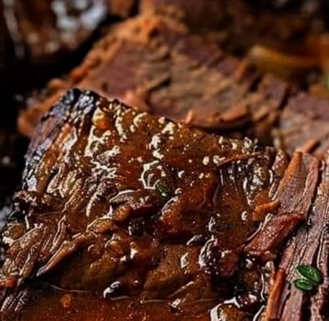 Ingredients4-5 pounds beef brisket, trimmed2 teaspoons kosher salt1 teaspoon freshly ground black pepper1 teaspoon smoked paprika1/2 teaspoon onion powder1/2 teaspoon garlic powder2 tablespoons olive oil1 large onion, sliced3 cloves garlic, minced1 cup beef broth1/2 cup balsamic vinegar or red wine1/4 cup brown sugar2 tablespoons tomato paste2 tablespoons Worcestershire sauce2 bay leavesFresh thyme sprigsPreparationPat the brisket dry with paper towels. Combine salt, black pepper, smoked paprika, onion powder, and garlic powder in a small bowl to create a seasoning mix.Rub the seasoning mix generously on both sides of the brisket.Heat olive oil in a large skillet over medium-high heat and sear the brisket for 3-4 minutes on each side until a golden crust forms. Transfer it to the slow cooker.In the same skillet, cook the sliced onion and minced garlic until softened, about 3 minutes.Deglaze the skillet with beef broth, scraping up the browned bits. Stir in balsamic vinegar, brown sugar, tomato paste, and Worcestershire sauce. Simmer for 2 minutes before pouring over the brisket.Add bay leaves and fresh thyme sprigs on top of the brisket in the slow cooker.Cover and cook on low for 8-10 hours until the brisket is fork-tender.Let the brisket rest before slicing against the grain. Serve with gravy from the cooking juices, strained for smoothness.Enjoy!