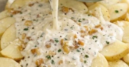 Preheat your oven to 375°F (190°C). Lightly grease a 9×13-inch baking dish or a deep vintage-style ceramic casserole dish with a little butter or cooking spray so the potatoes don’t stick.