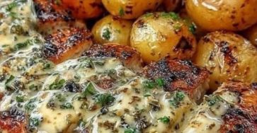 Creamy Garlic Chicken with Roasted Baby Potatoes