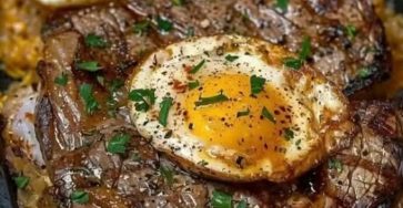 Ingredients:- 2 ribeye steaks (about 1-inch thick)- 4 large eggs- 2 tablespoons olive oil- 2 tablespoons unsalted butter- Salt and…