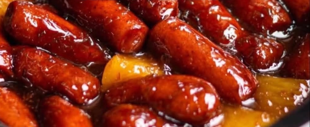 - Add little smokies and drained pineapple chunks to a 1.5-quart slow cooker.