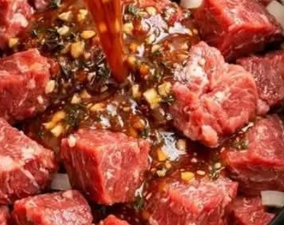 Place the raw beef chuck cubes in a large bowl and season with 1 teaspoon of the kosher salt and 1/2 teaspoon of the black pepper. Toss to coat and set aside while you prepare the mixture.