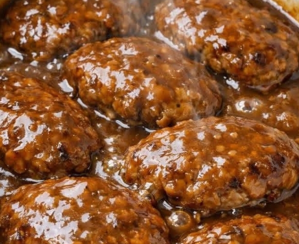 Once done, taste the gravy and adjust with a pinch of salt and black pepper if needed. Serve the hot patties straight from the slow cooker, spooning plenty of the rich brown gravy over each portion so those golden-brown edges peek through under the sauce.