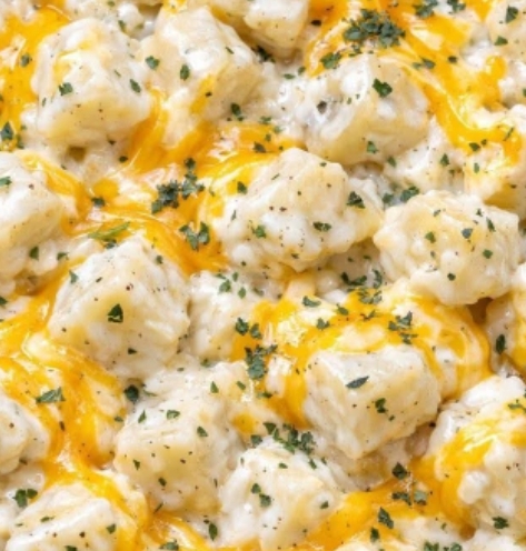 Once the potatoes are tender, gently stir them to re-coat with the sauce, then sprinkle 1 1/2 cups of the shredded cheddar cheese evenly over the surface. Cover and cook on LOW for an additional 10 to 15 minutes, just until the cheese is fully melted and forms glossy yellow swirls on top.