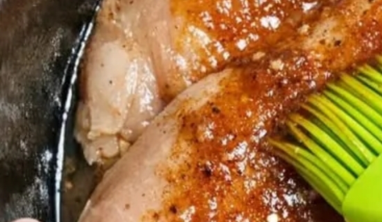Using a pastry brush or the back of a spoon, generously brush the honey mustard sauce over the tops and sides of each chicken breast. Spoon any remaining sauce over the chicken so every piece is well coated.