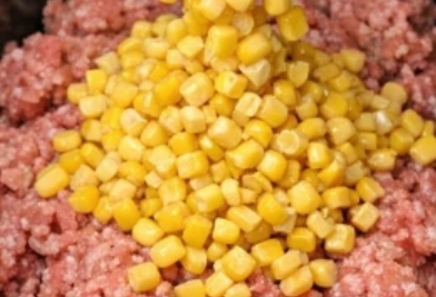 Open the cans of corn, drain well, and dump the canned corn over the seasoned ground beef in the slow cooker, spreading it into an even layer with a spoon.