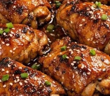 8. Return the chicken to the slow cooker, spoon some of the warm sauce over the top so the thighs are glazed and surrounded by the caramel-colored juices, and serve hot with extra sauce on the side.