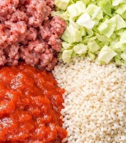 Place browned beef, chopped cabbage, garlic, rice, diced tomatoes, broth, and seasonings into the slow cooker.