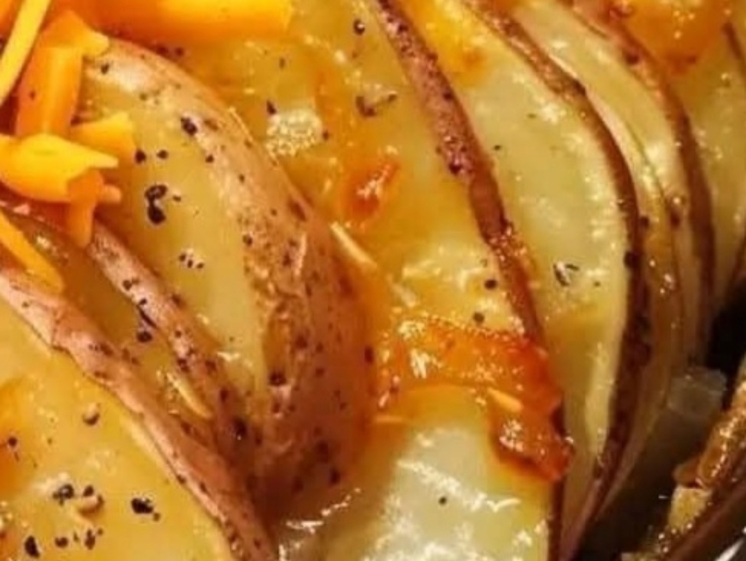 - In a large mixing bowl, combine the sliced potatoes with the melted butter, ensuring each slice is well coated.