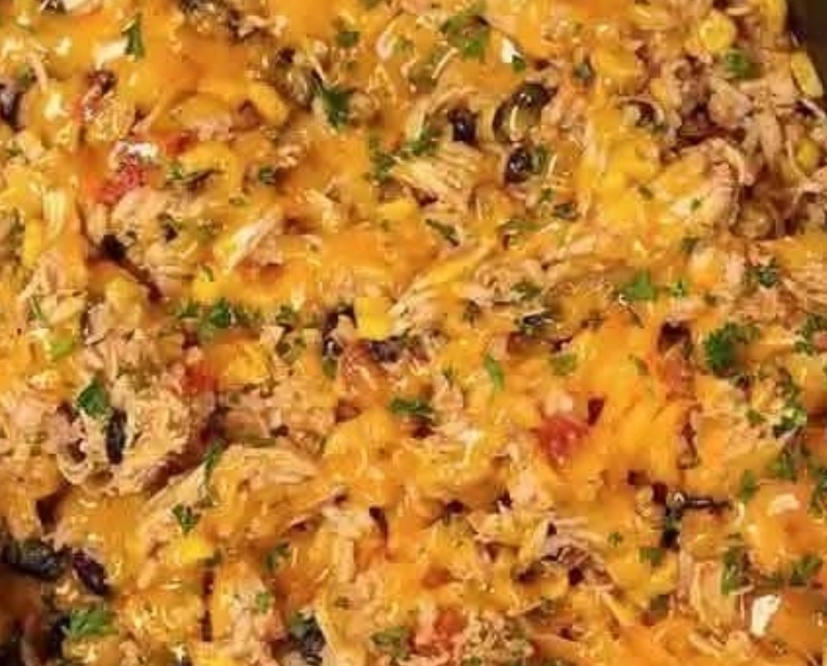 Ingredients▢4 Chicken Breasts▢½ Onion diced▢1 can Black Beans Drained and Rinsed▢1 can Corn Drained▢1 can Cream of Chicken Soup▢1 can Diced Tomatoes with Green Chiles▢1 cup Milk▢1 Tbsp Taco Seasoning▢1 tsp Paprika▢1 tsp Pepper▢3 cups Cooked White Rice▢2 cups Sharp Cheddar Cheese ShreddedInstructionsPlace the chicken at the bottom of a crock pot. Top with the beans, corn, tomatoes, onion, cream of chicken soup, milk, paprika, taco seasoning and pepper.Cover and cook on low for 6-8 hours or on high for 3-4 hours.Remove the chicken, shred and return it back to the crock pot.Stir in the cooked rice and 1 cup of the shredded cheese.Top with the remaining cheese. Cover and allow the cheese to melt (3-5 minutes).Serve immediately and store the leftovers in an air tight container. Enjoy!