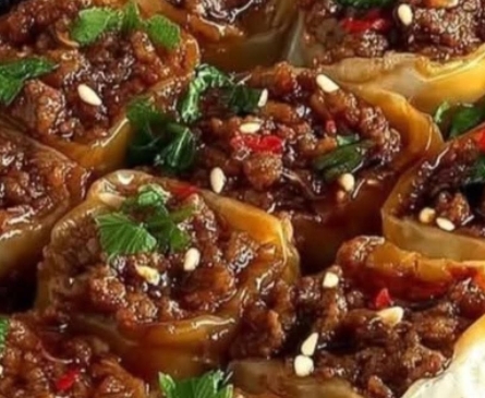 In a large bowl, mix ground beef, garlic, ginger, soy sauce, chili paste, sesame oil, scallions, and cornstarch until combined.