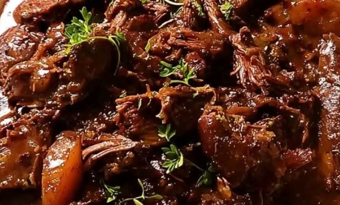 Tender Slow-Cooked Lamb in Rich Red Wine and Herb Sauce