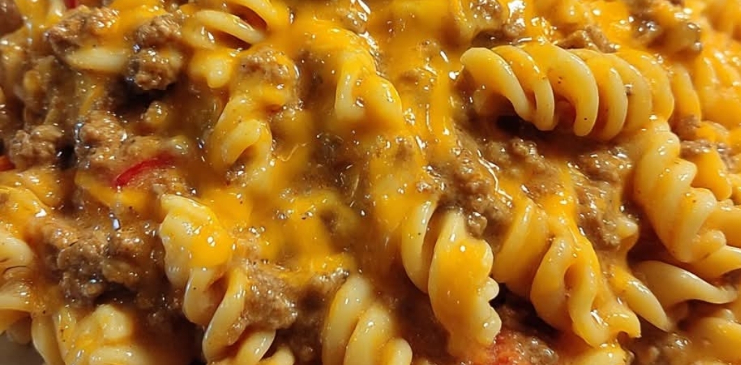 5️⃣ Add the cooked rotini pasta to the skillet. Toss everything together until every piece of pasta is coated in that luscious, cheesy sauce.